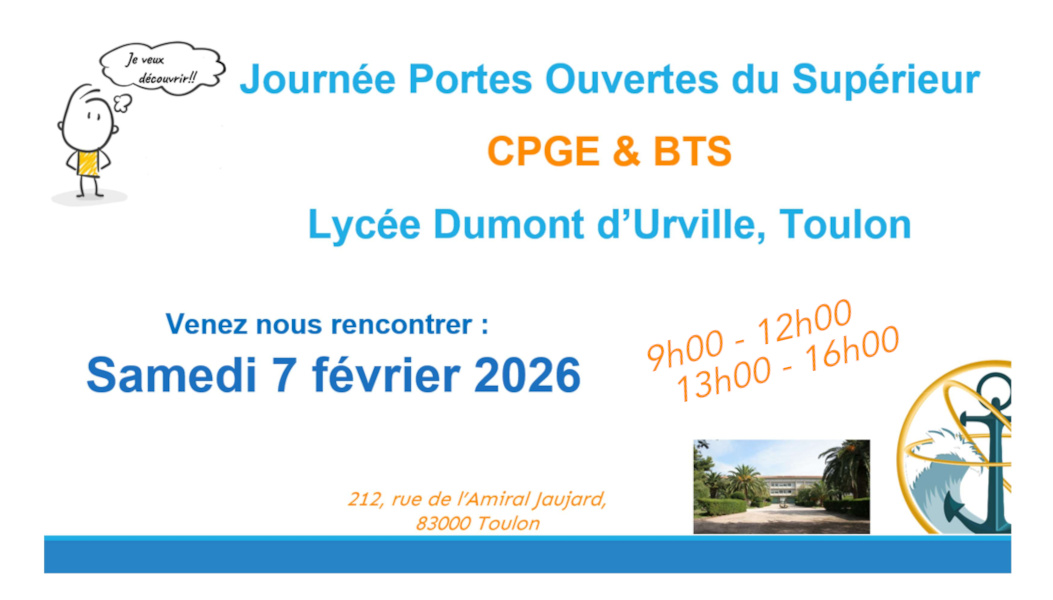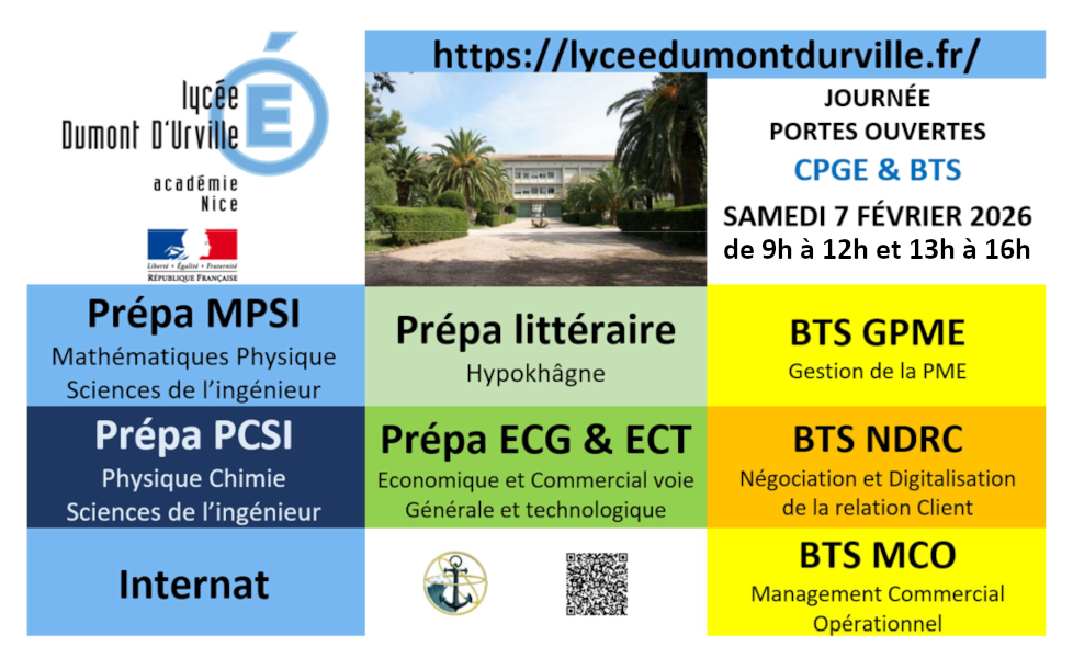 - CPGE et BTS : samedi 07 février 2026 de 9h à 12h et de 13h à 16h.