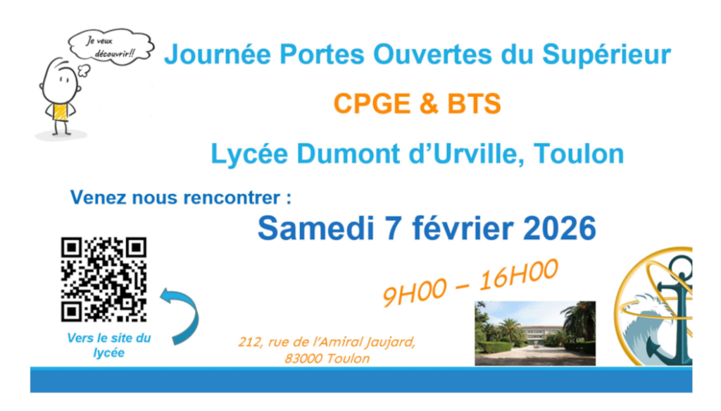 - CPGE et BTS : samedi 07 février 2026 de 9h à 16h.
