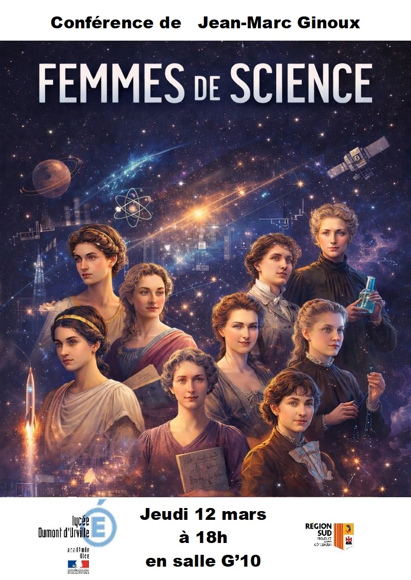 Pour découvrir quelques portraits de ces femmes, illustres, et souvent oubliées ou occultées par l’histoire des sciences, venez à la conférence de Jean-Marc Ginoux, au lycée Dumont d’Urville, le jeudi 12 mars à 18h en salle G’10 !